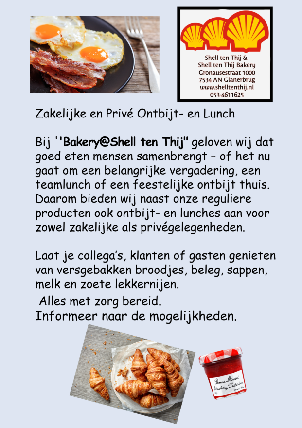 Bij ons vindt u dagelijks een vers en gevarieerd bakery assortiment. Van ambachtelijk gebakken broodjes en croissants tot zoete lekkernijen zoals muffins en cakejes. Of u nu iets zoekt voor bij de koffie of een compleet ontbijt, wij hebben voor ieder wat wils.